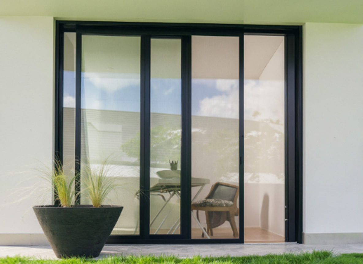 Die Insektenschutz-Schiebetür überzeugt durch ihre hohe Stabilität und die geringe Einbautiefe, wodurch sie sich ideal für unterschiedlichste Flügeldimensionen – von klein bis gross – eignet.